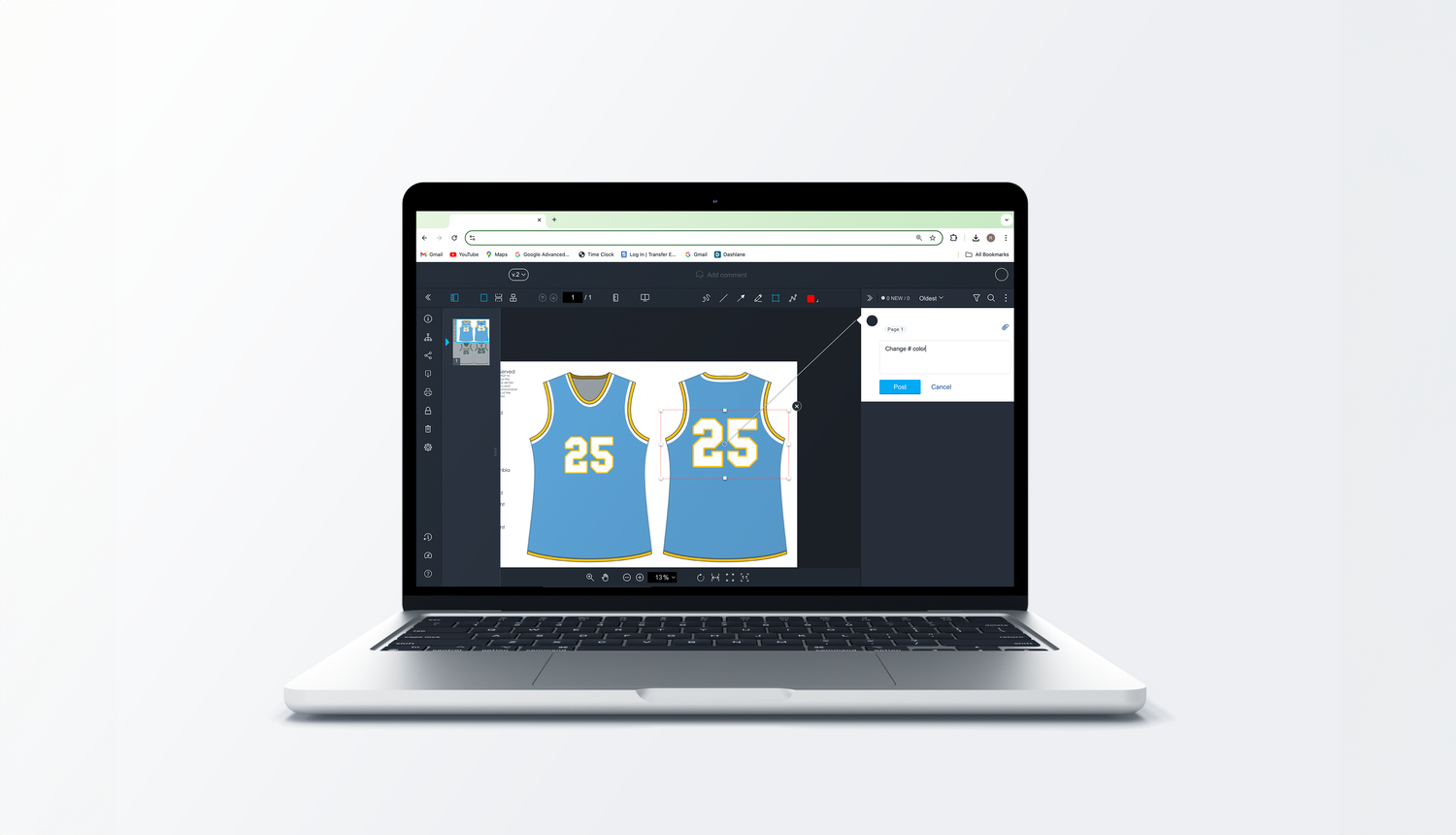 Once you receive your Art Approval Link, you'll be able to view your Uniform Mockup and interact directly with our designers to make any changes you see fit.